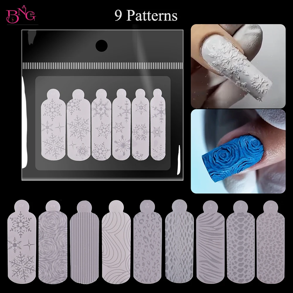 BNG 12 шт. набор форм для французского маникюра силиконовые формы с двойной наклейкой быстрой конструкции многоразовые трафареты розами и рельефным - Инструменты для дизайна ногтей