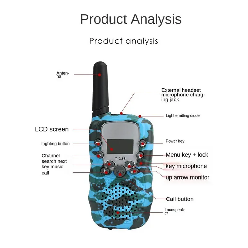 Камуфляжная детская рация T388 PMR GMRS портативная с дистанционным беспроводным вызовом 3-х километров - Электронные игрушки