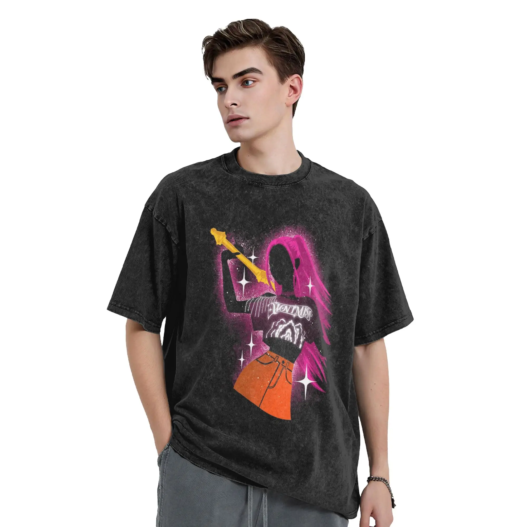 Huntrix Mira Shadow KPop Demon Hunters Washed футболка мужские хлопковые футболки Y2K летние футболки с круглым вырезом для отдыха одежда больших размеров (art.: 3920d2481643a)